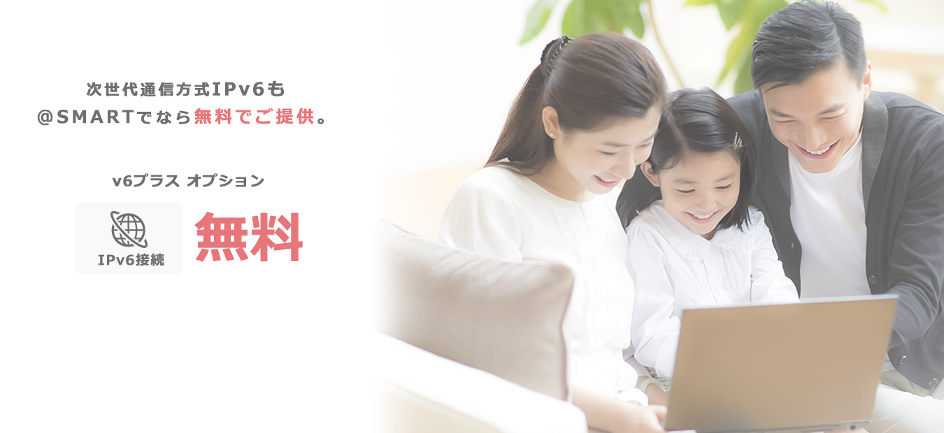 インターネット通信時の混雑による速度遅延を防ぐ「v6プラス(IPv6 IPOE接続サービス)」を、月額無料にて提供中です。