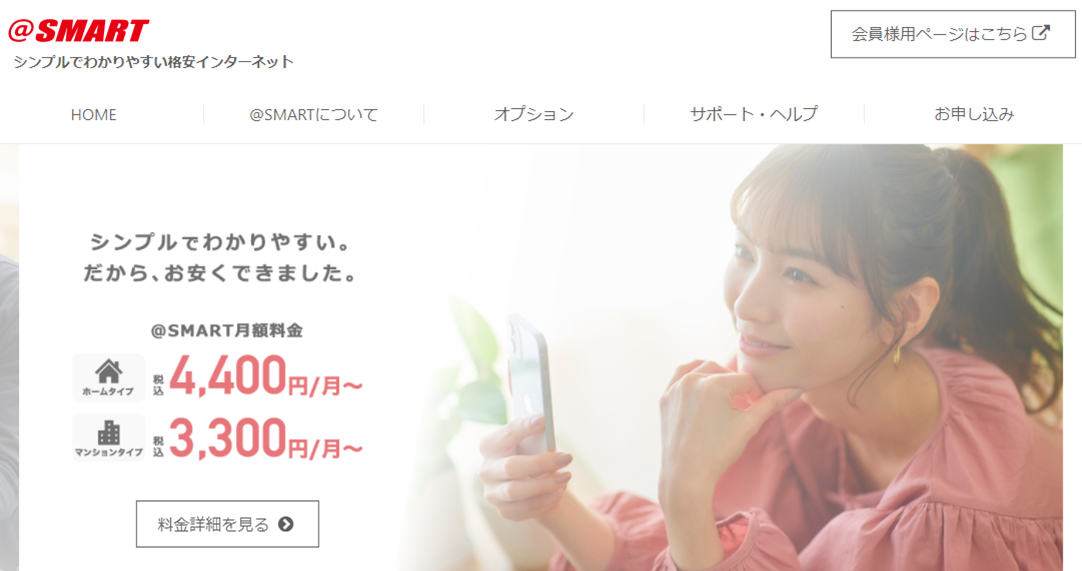 プロバイダ一体型(プロバイダは@SMART)のサービスのため、別途でプロバイダ契約をしていただく必要がございません。