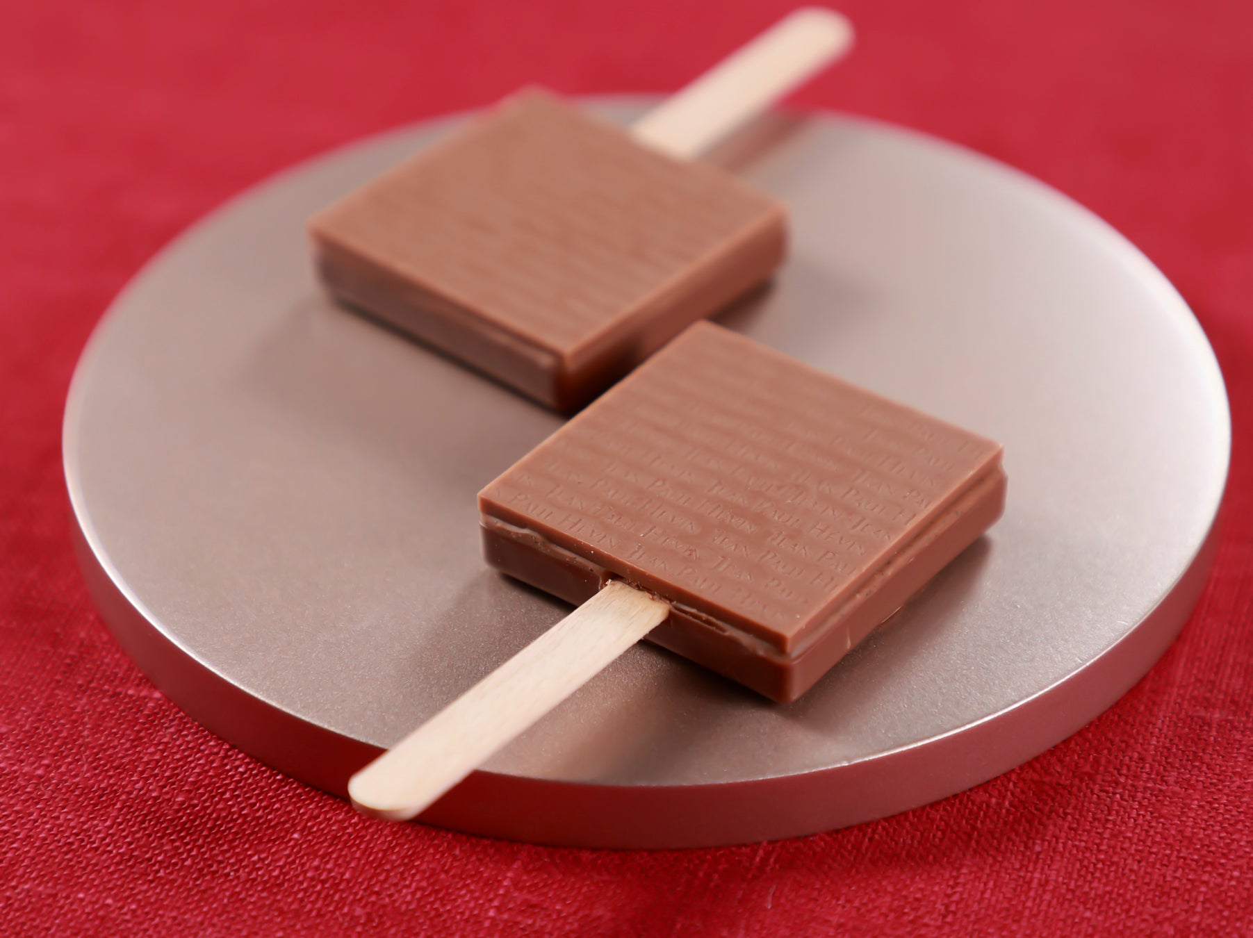 アーモンドのジャンドゥジャをミルクチョコレートでコーティング。フルール ドゥ セル(塩の花)のアクセント。