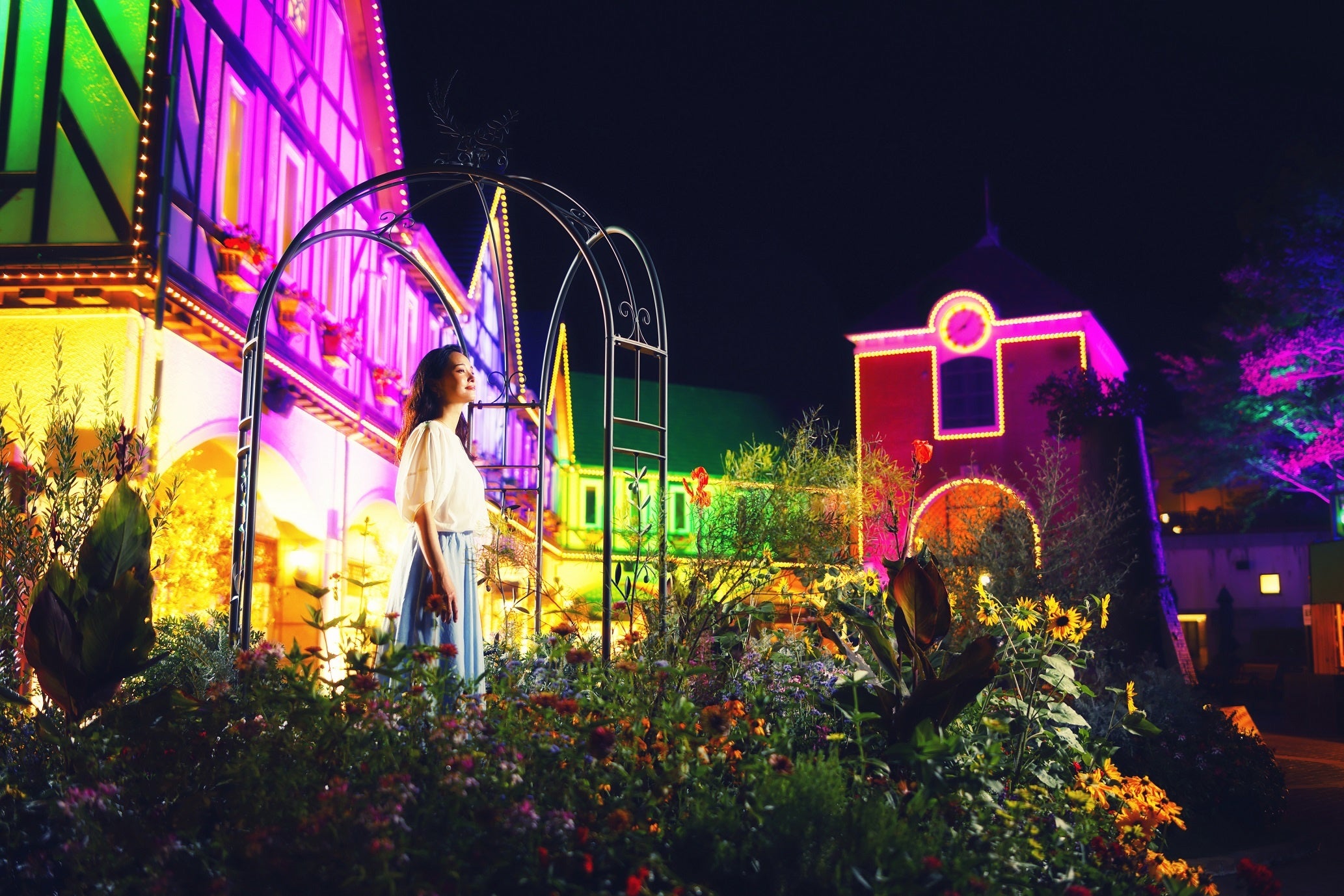 - 自然空間×イルミネーション・・・ハーブ園ならではの自然の木々やドイツの古城をモチーフとした建物(展望レストハウス)を幻想的に演出するイルミネーション「光の森~Forest of Illuminations~」がナイター営業時には開催されます
