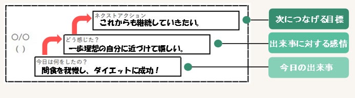 思いついた時に3ステップのアクションを記入するというシンプルな仕様です。(下図参照)