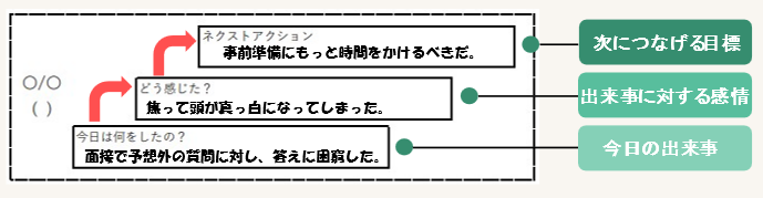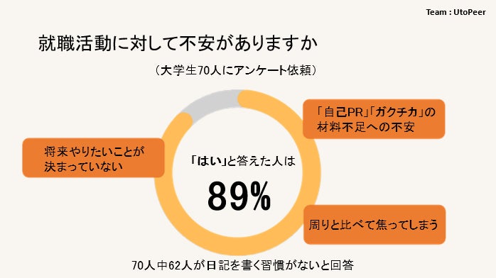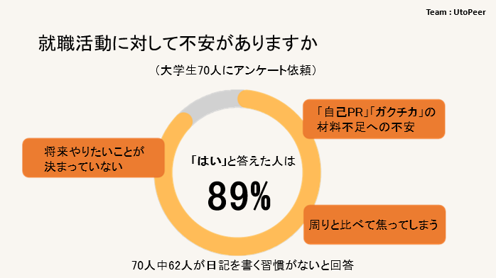 このような背景から就活生が抱える不安を解消する日記を考えようと企画が練られました。