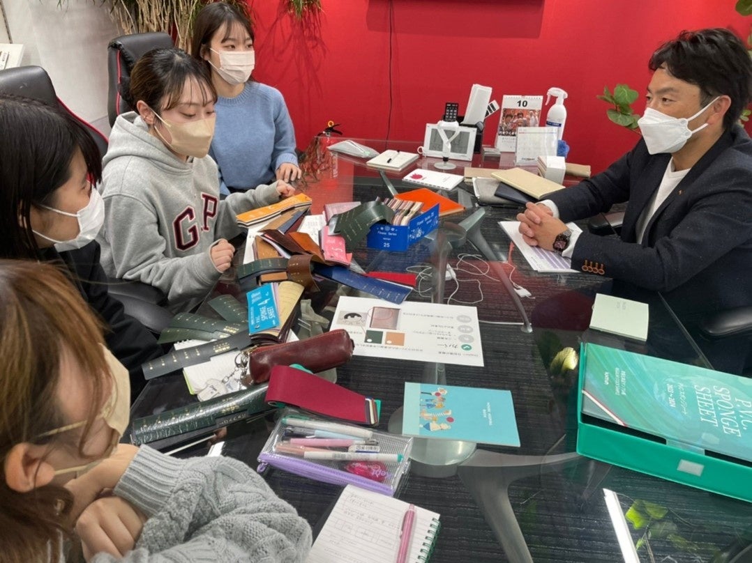 経済学部2年古川結惟さん、経営学部2年松下真子さんの4名。伊藤手帳が製品化を行いました。