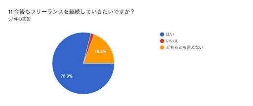 「 今後もフリーランスを継続していきたいですか?」という質問に対して、78.9%が「継続の意思あり」と回答しています。