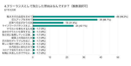 - フリーランスとして独立した理由は「働き方の自由度を求めて」が8割
