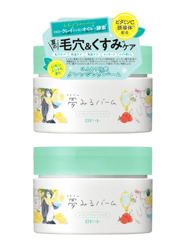 ロゼット株式会社は、“毛穴ケア・保湿ケア・角質ケア・マッサージ・メイク落とし”を兼ねた1品5役の多機能クレンジングバーム『夢みるバーム』から、ひんやり冷感&さわやかなレモンミントの香りで、気になる夏の毛穴・くすみ*1をケアするクレンジングバーム「夢みるバーム レモン*2シャーベット」を数量限定で新発売。2023年4月20日(木)より全国のドラッグストア、バラエティショップ(※一部店舗を除く)、ロゼットの通信販売・各公式オンラインショップにて販売を開始いたします。(*1 古い角質による *2 レモン果実エキス〔保湿成分〕)