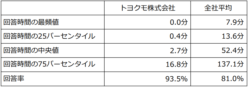 一斉訓練参加団体に提供しているレポートでは、団体ごとの結果と全体平均を表形式で確認していただけます。上図はトヨクモの結果です。