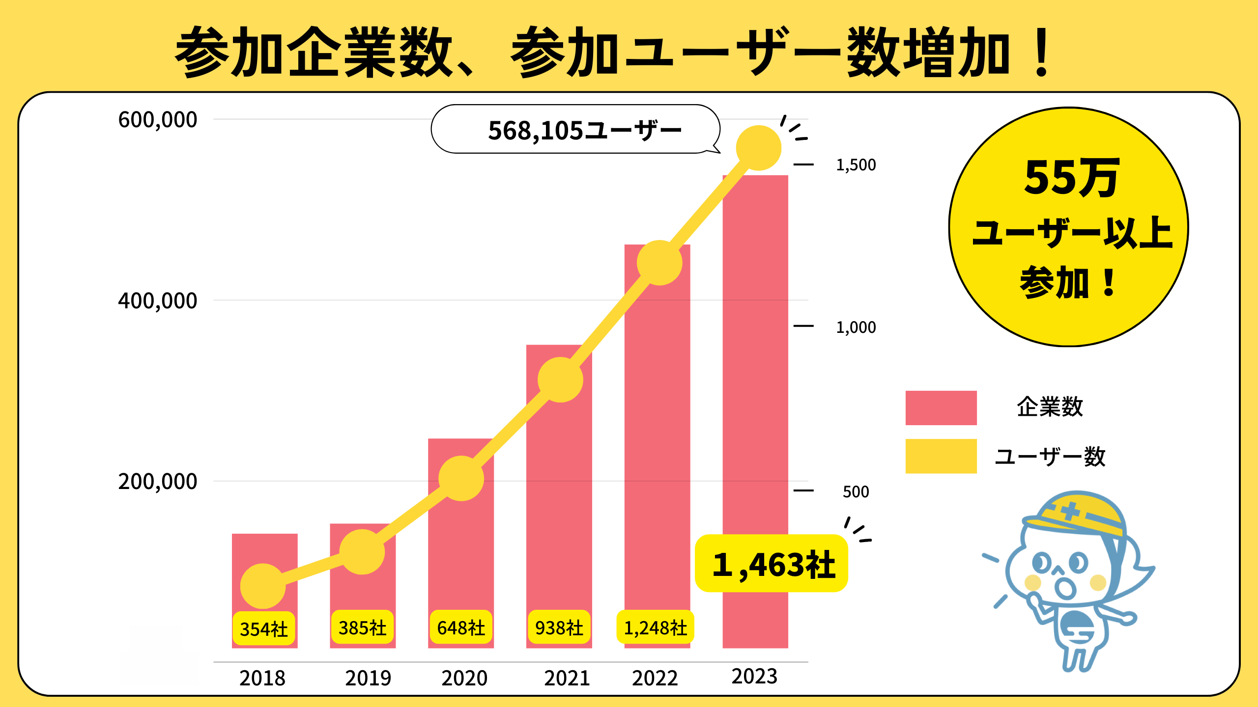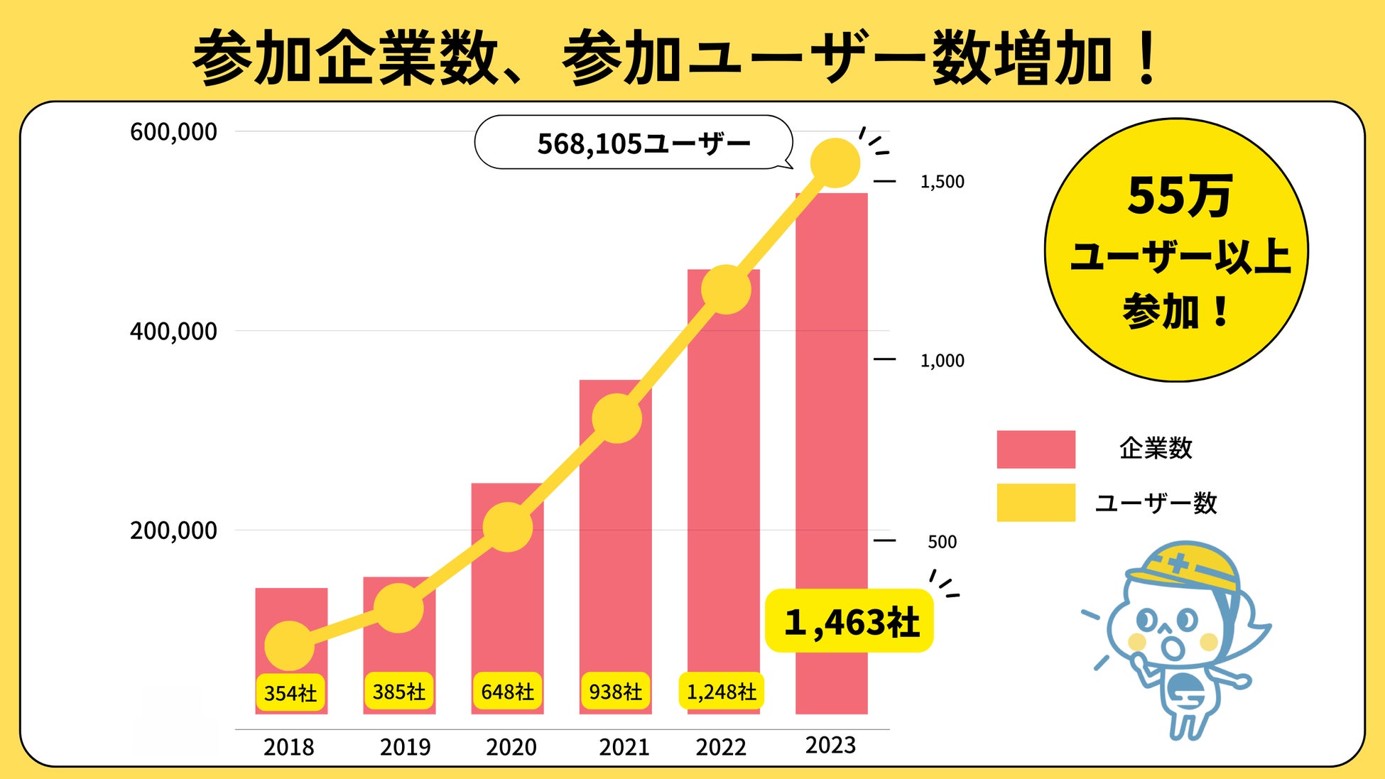 安否確認サービス2をご利用いただいているお客様に対して、トヨクモが主体となって行う実践に近い形式の訓練です。本年は1,463団体(前年比117%)、568,105ユーザー(前年比129%)にご参加いただきました。