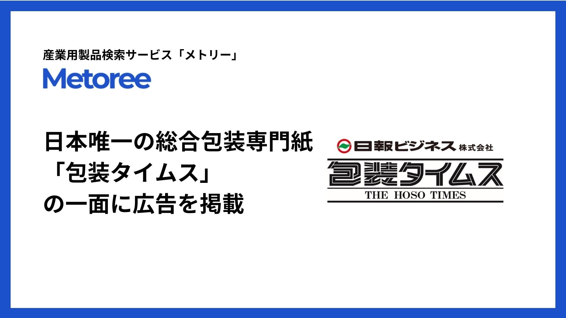 産業用製品検索サービス「メトリー」、日本唯一の総合包装専門紙「包装タイムス」の一面に広告を掲載