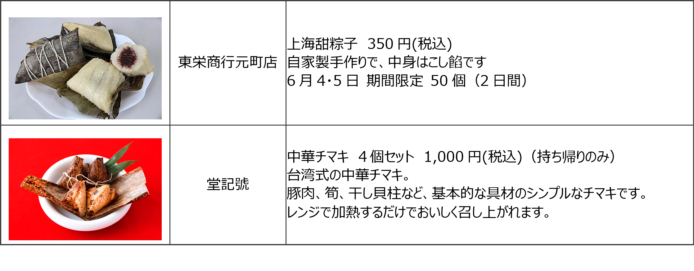 恒例イベントである「チマキフェア」に加え、今年は2年続けてステージイベントが中止になった「春節祭」に出演予定だった皆様による、龍舞や獅子舞、舞踊、音楽パフォーマンスなどのステージイベントも実施します。