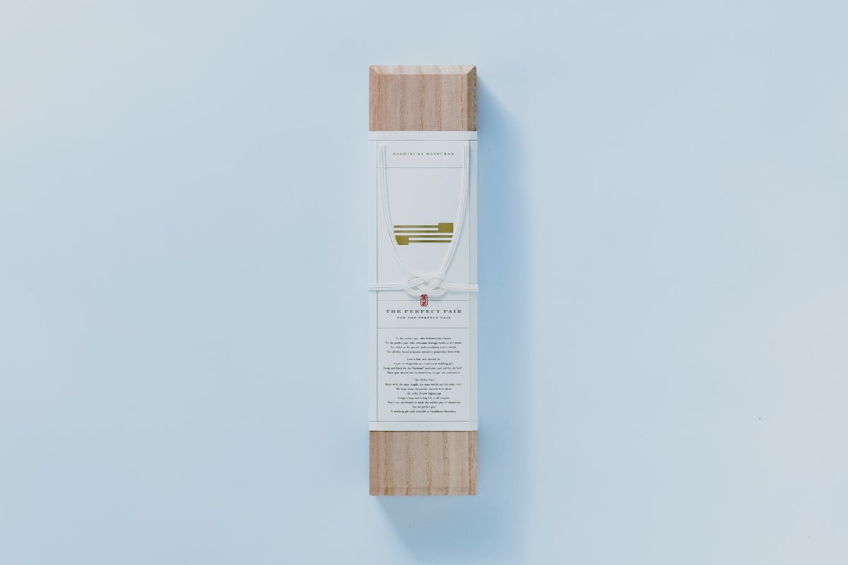 箸には、幸せやご縁の「橋渡し」という意味があることから、縁起の良い贈り物として知られる「夫婦箸」。しかし、従来の夫婦箸は、長短のセットに、黒と赤の、男女のふたりを表したものしかありませんでした。愛の形はさまざまなのに、夫婦箸の形はひとつしかなかったのです。そこで『ふうふ箸』は、同じ色・長さ・太さでありながら、誰の手にもなじみやすいデザインで、どんなカップルにも贈りやすい箸ギフトにすることにこだわりました。