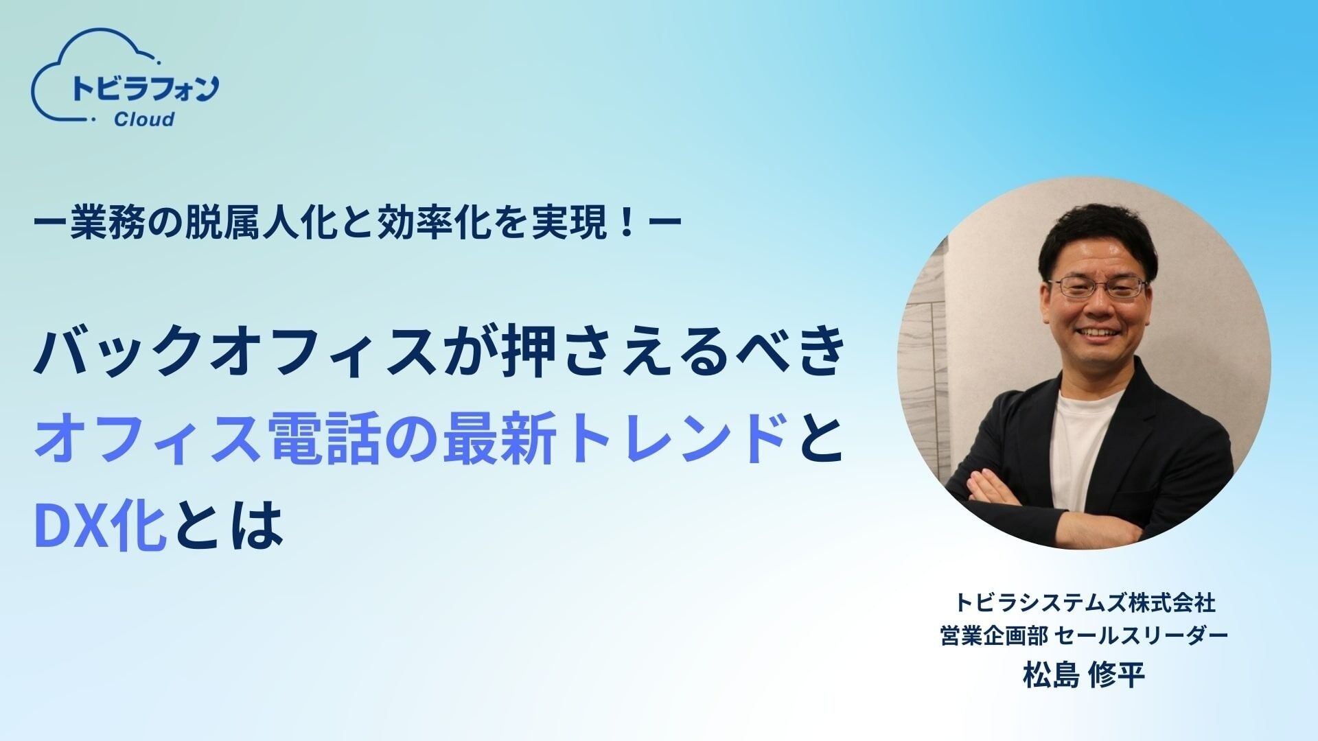 業務の脱属人化、効率化を実現するために、バックオフィスが押さえるべきオフィス電話の最新トレンドについて解説いたします。お気軽にご参加ください。