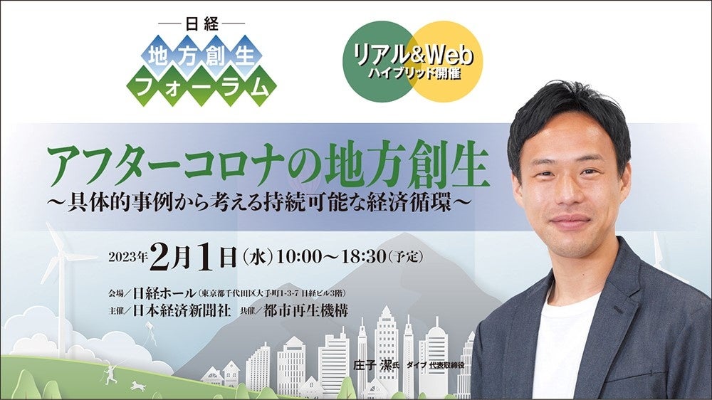 全国約4,600箇所の宿泊施設へ人材派遣・紹介事業を行う株式会社ダイブ(東京都新宿区 代表取締役:庄子潔 以下、ダイブ)は、日本経済新聞社が2023年2月1日(水)に主催する地方創生フォーラム「アフターコロナの地方創生」の基調講演に代表の庄子潔が登壇することをお知らせいたします。