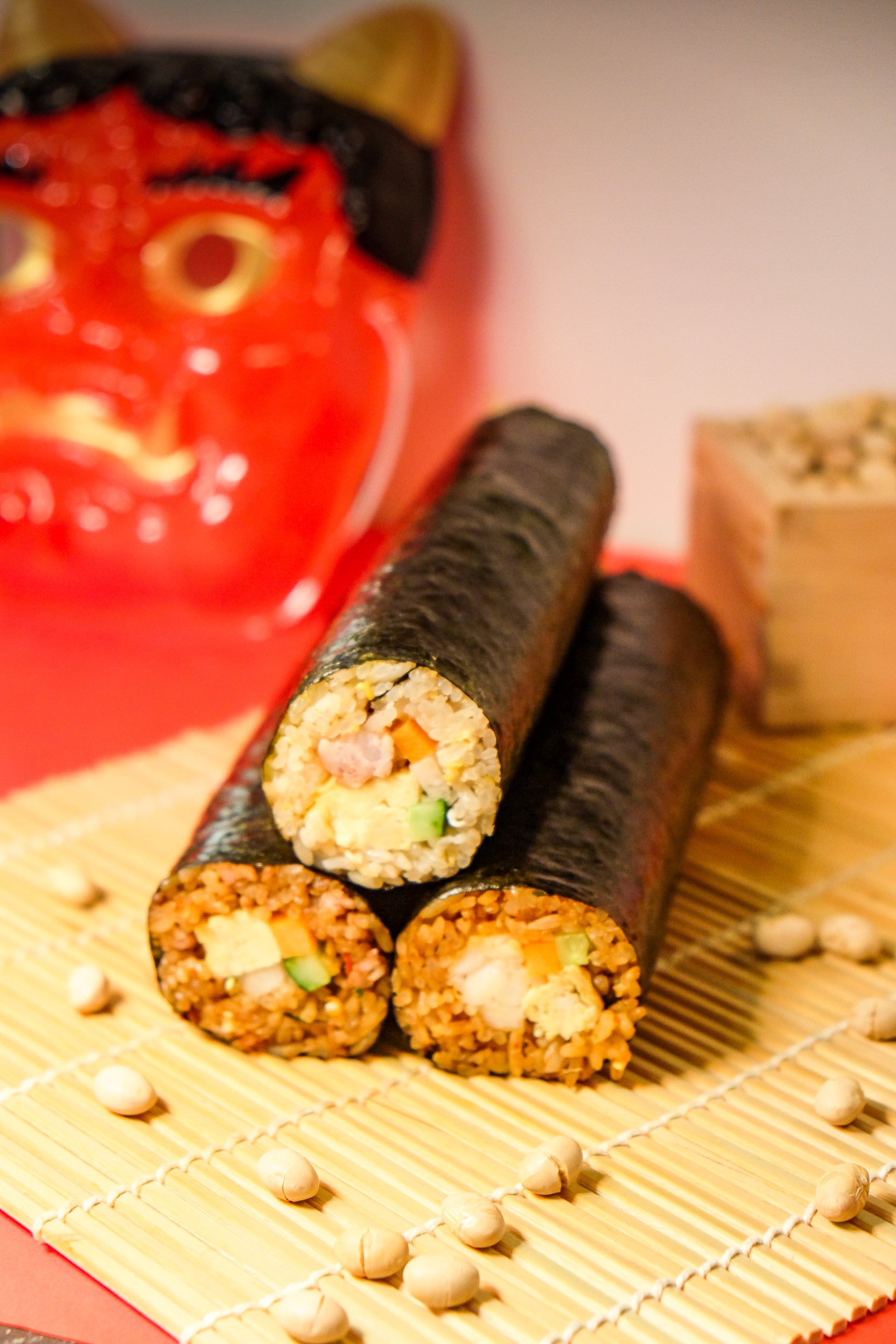 その年の神様がいるとされている方角「恵方」を向いて、丸かぶりすると福を招くといわれている恵方巻き。立春の前日である「春の節分」は、旧暦の大晦日にあたる節目の一日として、 “鬼を祓い、福を呼びよせる“とされている豆まきとともに、恵方巻きを食べる習わしがあります。