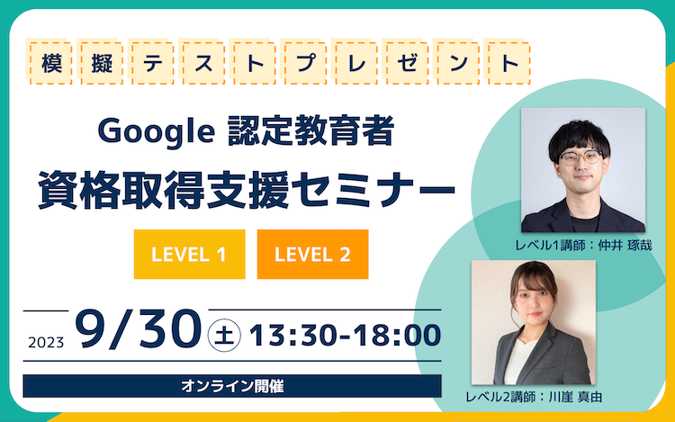 資格取得を目指すのはもちろんのこと、受講後すぐに日々の授業や業務に活かせる内容となっており、Google for Education™ 活用の新しい発見が盛りだくさんのセミナーです。