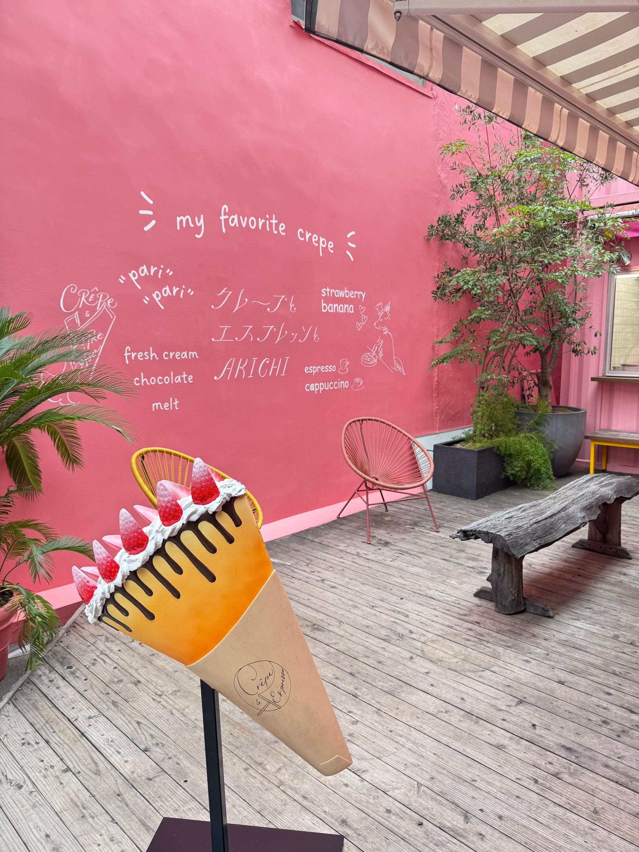 店内には、思わず写真を撮りたくなるような空間演出が散りばめられており、クレープと空間が一緒に楽しめる、五感で味わう体験型スイーツスポットです。