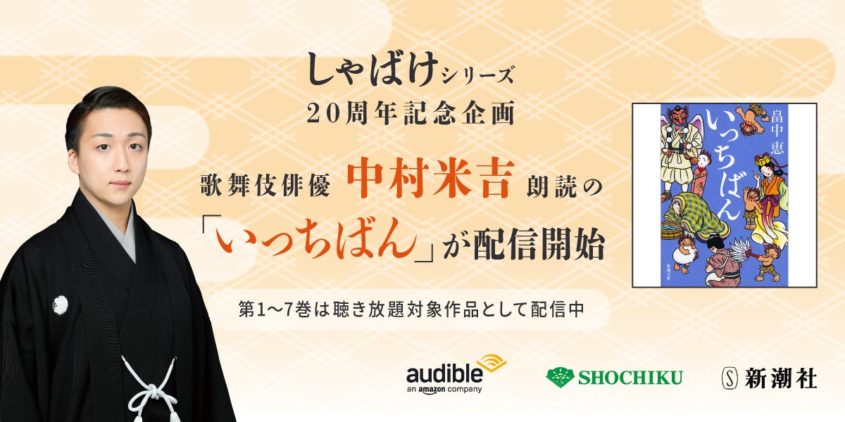 Amazon オーディブル(以下、オーディブル)、松竹株式会社(以下、松竹)と株式会社新潮社(以下、新潮社)は、畠中恵さん著の人気ファンタジー時代小説「しゃばけ」シリーズの第7巻『いっちばん』を、歌舞伎俳優・中村米吉の朗読で、本日1月27日(木)よりオーディブルで配信を開始致します。