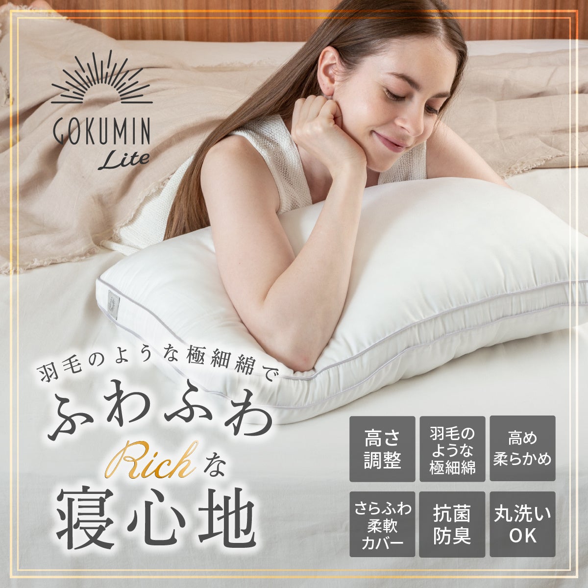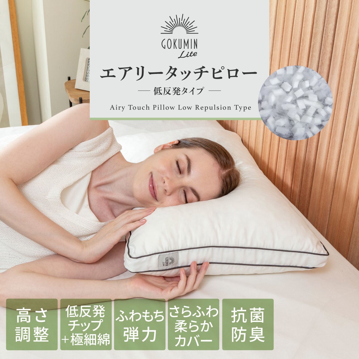 ふわふわ感触の極細マイクロファイバー綿ともっちり感覚の低反発ウレタンチップが、心地よい弾力と沈み込みで“ふわもち”寝心地を実現。