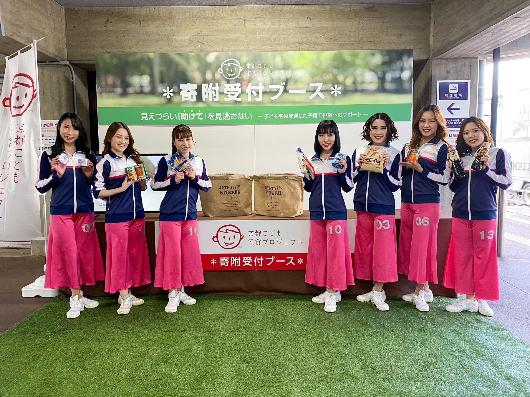 京都ハンナリーズの選手、公式チアダンスチーム「はんなりん」メンバーも寄附に参加しました。