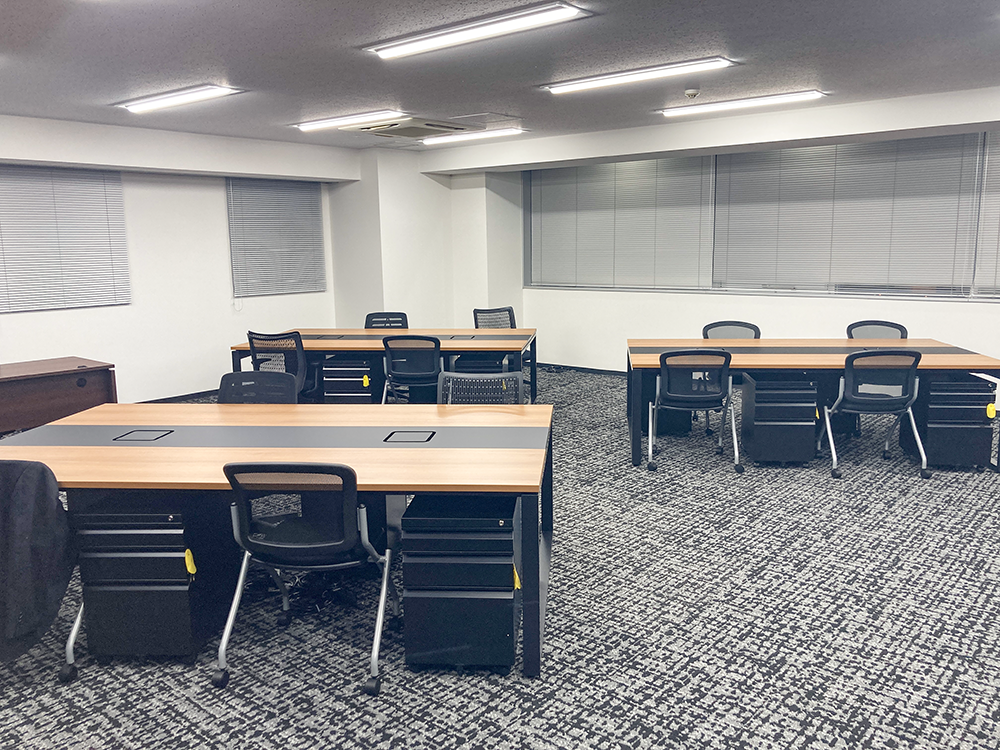 社員用の執務室については、それぞれのスタイルに合わせ業務がスムーズに取り組めるよう、個人個人のスペースを広く確保したレイアウトにしております。
