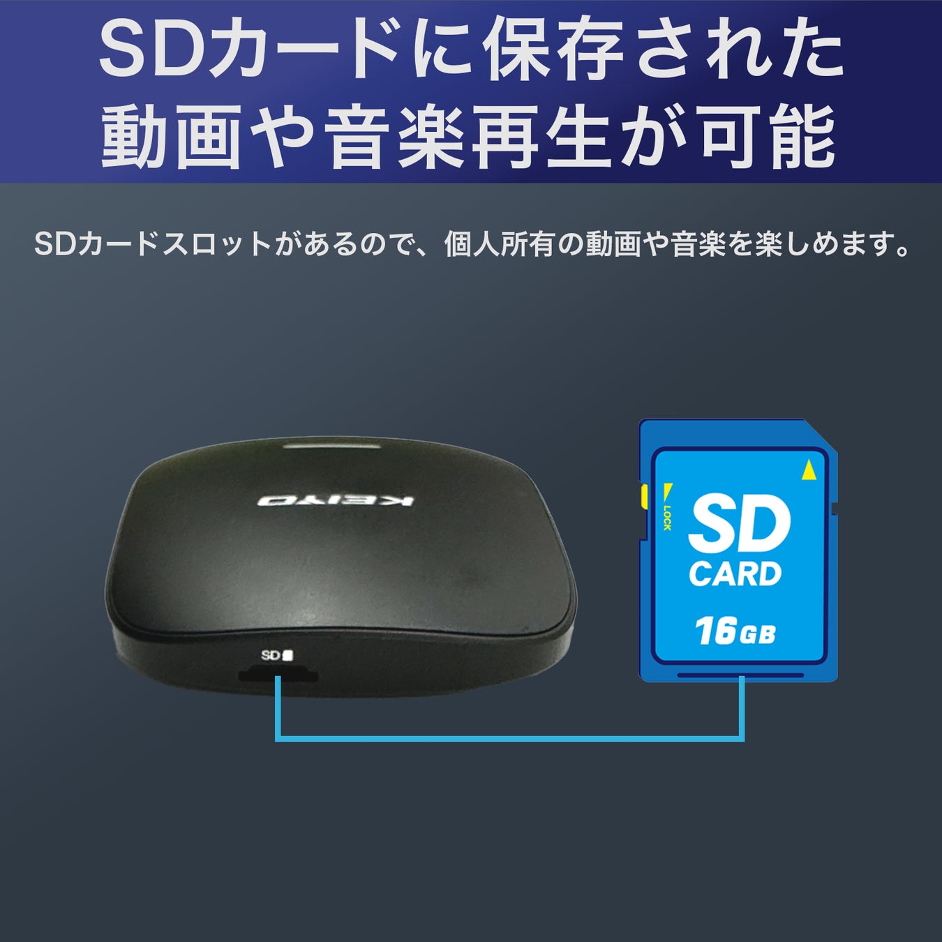 SDカードスロットがあるので、個人所有の動画や音楽を楽しめます。