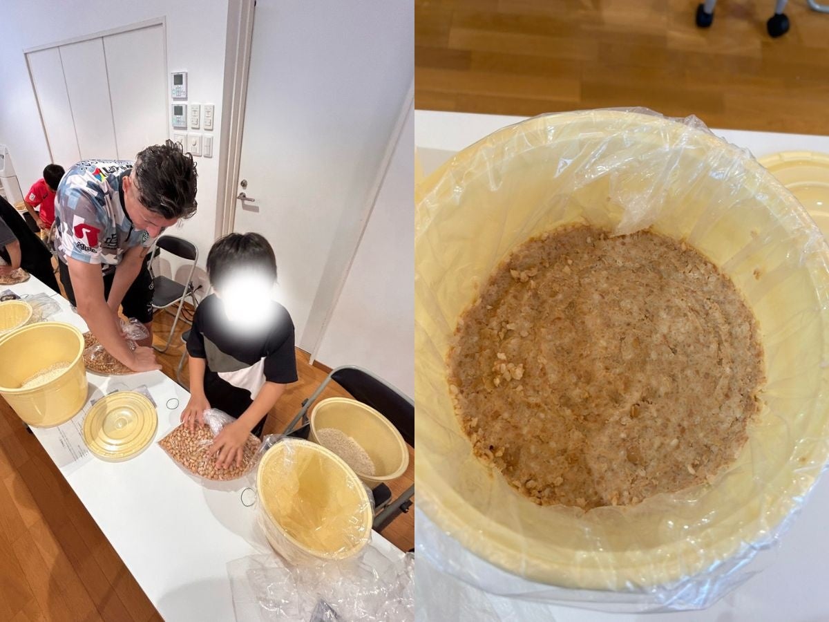 味噌作りは単なる作業ではなく遊びの感覚に近くなるので、大人だけで実施するより明らかに賑やかになります。