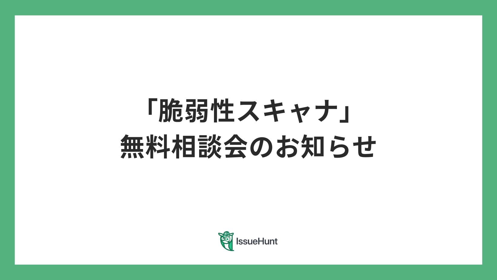 バグバウンティ・プラットフォームや、プロダクトセキュリティ支援サービスを提供するIssueHunt株式会社が、脆弱性スキャナ無料相談会を開催