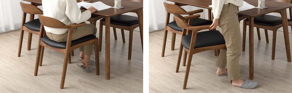 肘掛けの裏にはテーブルと干渉した際のキズを防止するフェルトも付いているので、安心してご使用いただけます。