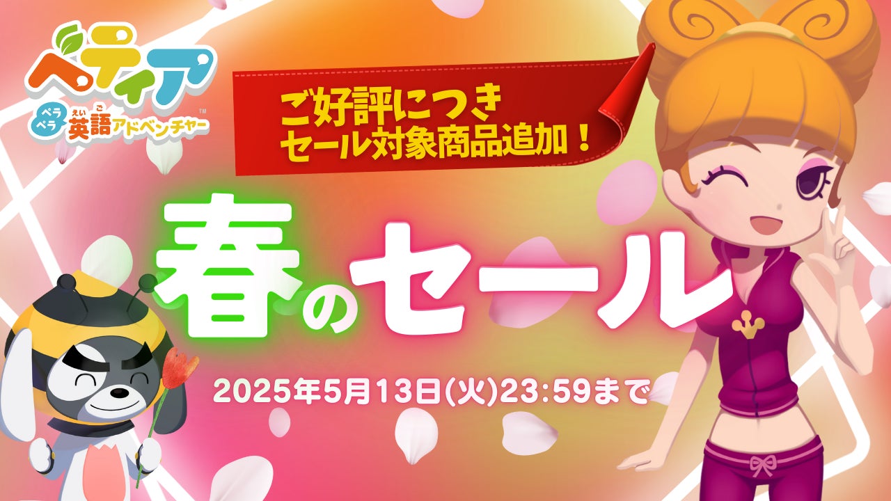 また、2025年4月17日より開催中の「ベティア 春のセール 第2弾」について、ご好評につき5月5日よりセールラインナップにバンドル版「ベティア ペラペラ英語アドベンチャー + レッスン2(CUBE3、CUBE4) セット」を追加することを決定いたしました。