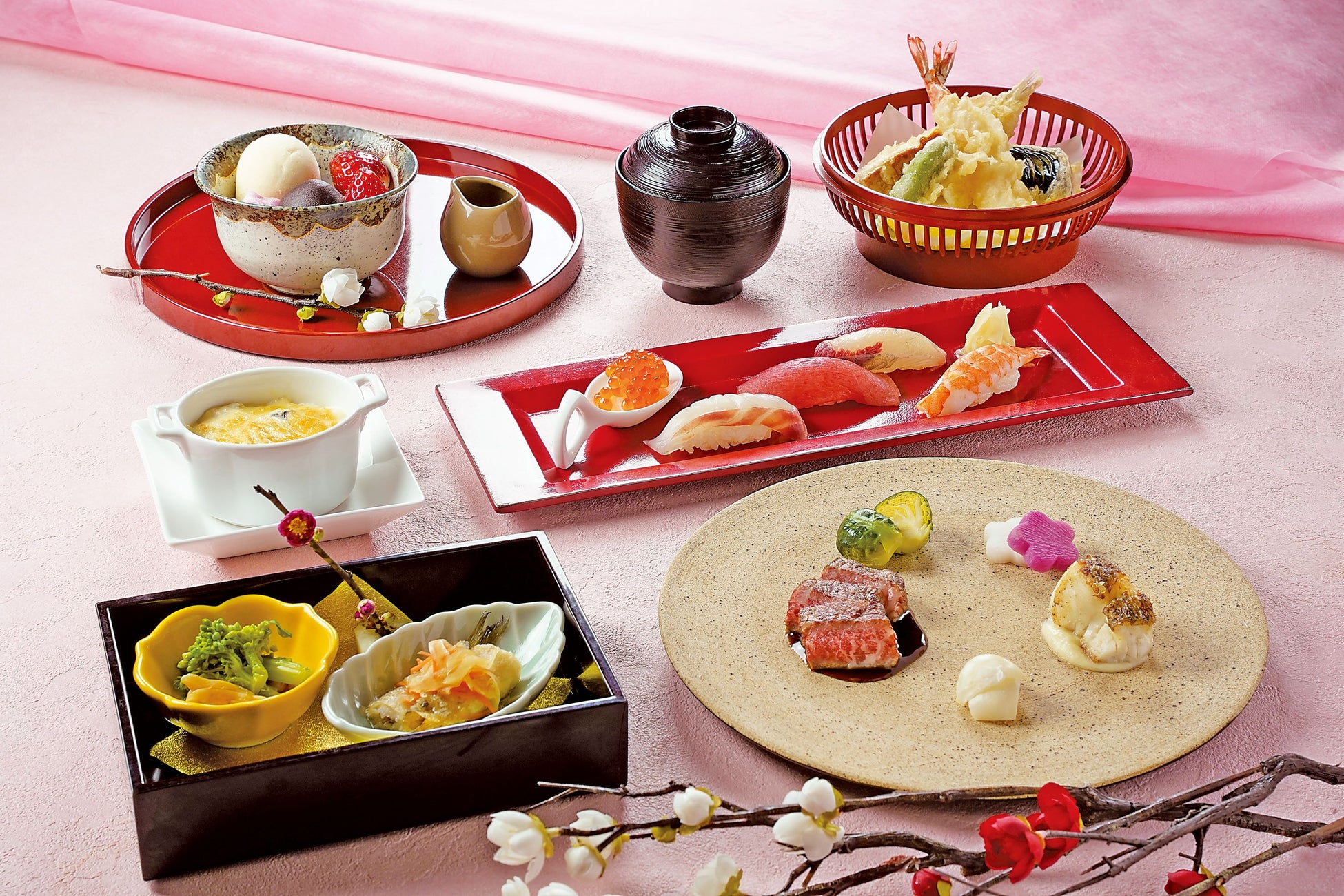 鮨・天麩羅・鉄板焼「羽衣」が提供するディナー「梅見会席(12,000円・税サ込)」やランチ「春の梅御膳(5,500円・税サ込)」、「梅見弁当(3,500円・税込)」を2月より販売開始します