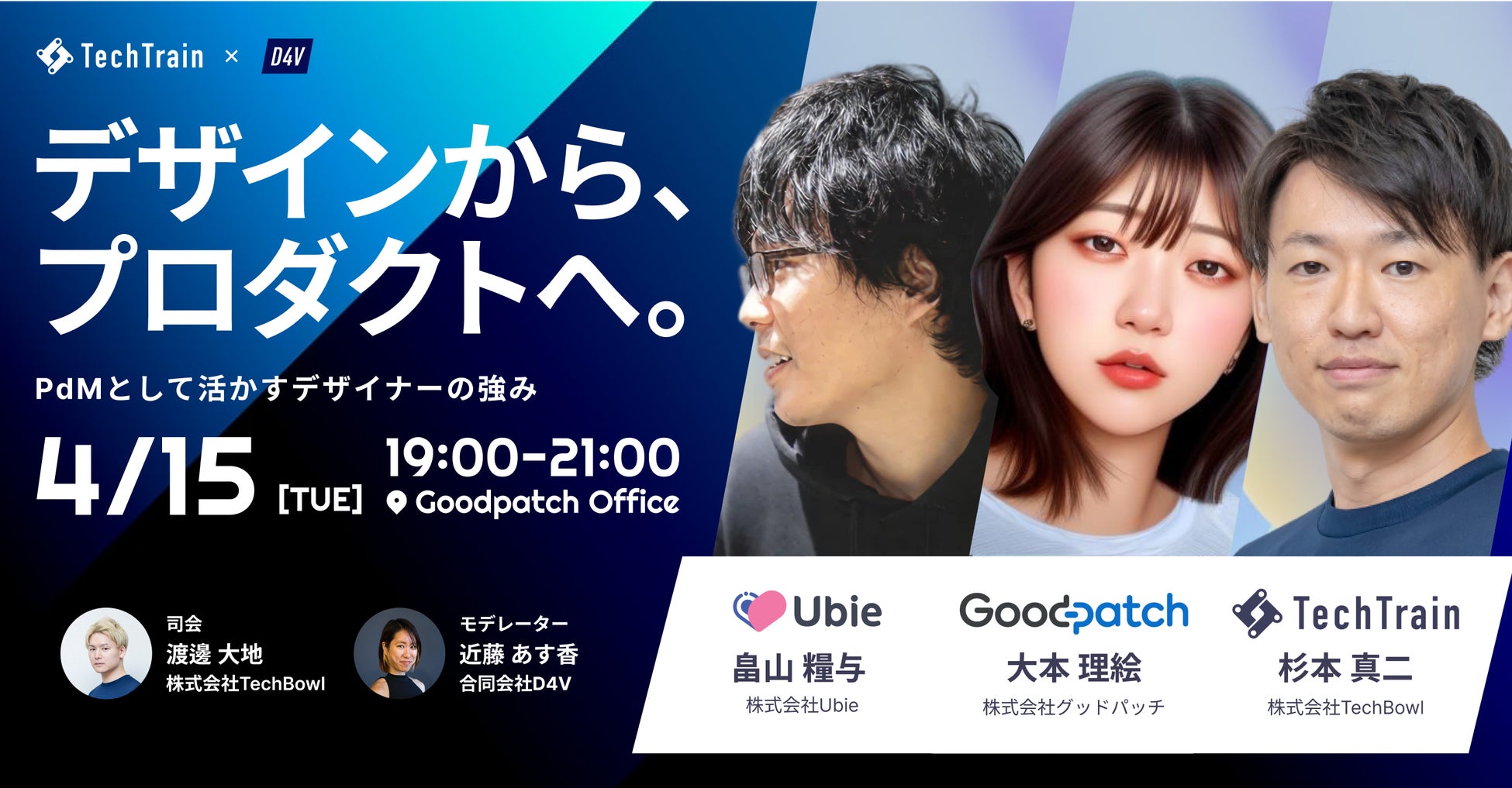 株式会社TechBowlと合同会社D4Vは、デザイナーからプロダクトマネージャー(PdM)へのキャリアトランジションに焦点を当てた合同イベントを開催することをお知らせいたします。本イベントでは、デザインの視点を活かしたプロダクトマネジメントの可能性について、第一線で活躍する専門家が自身の経験を共有し、参加者とともに次世代のプロダクト開発の在り方を探究します。デザインとプロダクト管理を統合することで生まれる新たな価値創造の可能性に興味をお持ちの方々に、実践的な知見と交流の場を提供いたします。