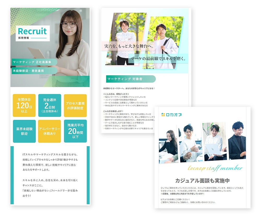 MEO・クチコミ・店舗集客支援SaaS「ロカオプ」を提供する当社は、 自社の採用活動において「ロカオプサイト」を活用し、職種ごとに採用専用のランディングページ(LP)を制作しました。