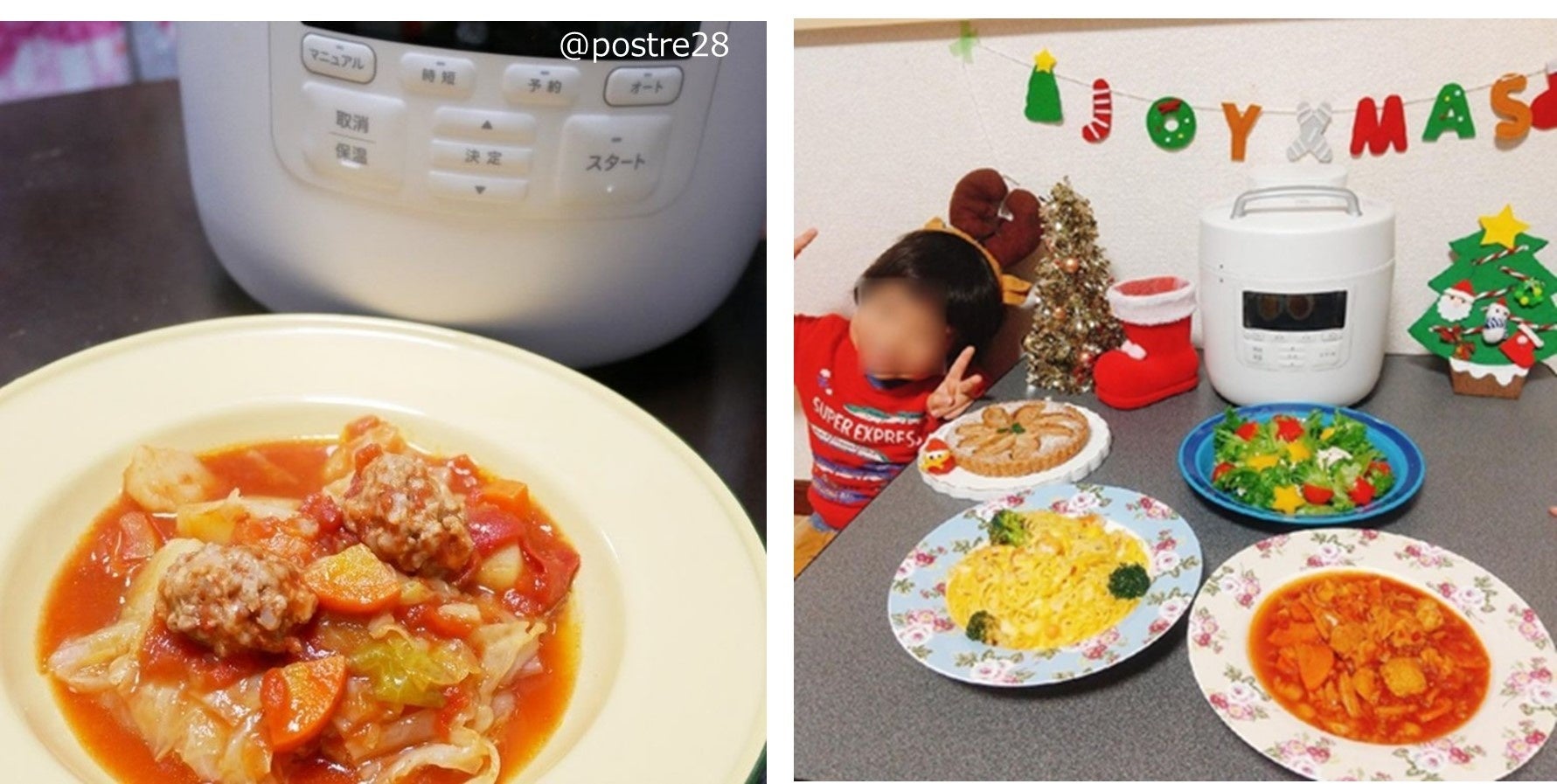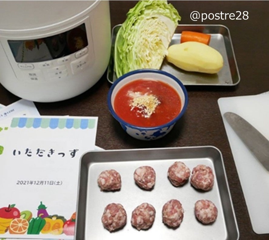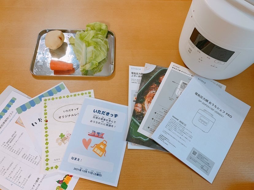 身の回りの家事をテーマとしたワークショップで家事について楽しく学んだあと、シロカの電気圧力鍋「おうちシェフPRO」を使ったお料理教室では、クリスマスにもぴったりなキャベツと肉だんごのトマト煮を作りました。