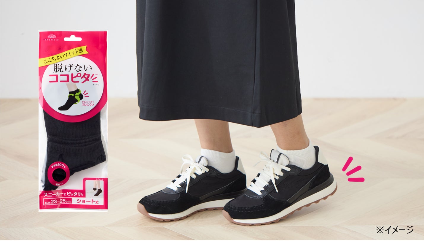 国内靴下売上高No.1※2レッグウェア製造卸販売・岡本株式会社(本社:大阪市西区・本店:奈良県広陵町、代表取締役社長:岡本隆太郎)は、シリーズ累計販売足数7,000万足を突破※3した「脱げないココピタ」スニーカー用から、新たにショート丈を発売しました。