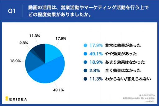 CINEMATOが実施した2023年2月のSaaS業界の動画施策の実態調査では、全体の67%が「動画による効果を実感している」と回答しています。