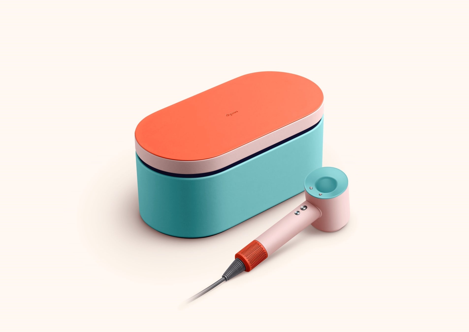 30mm Airwrap™ロングカーラー、スムージングブラシ(ソフト)、スムージングドライヤーの3つの厳選されたアタッチメントを搭載したシンプルモデルのDyson Airwrap™マルチスタイラー「Ceramic Pop(セラミック ポップ)」カラーモデルです。過度な熱ダメージを防ぎ、濡れた髪からスタイリングでき、エアリーカール、ブロー、ドライ、浮き毛抑制も一台で実現します 。