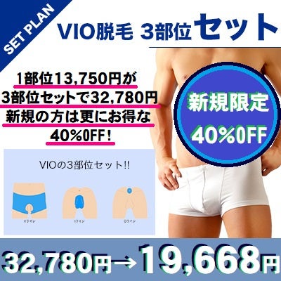 その中でも特に人気なのがヒゲ6部位が通常料金の半額の4950円や、VIOのセットプランが通常の40%OFFの