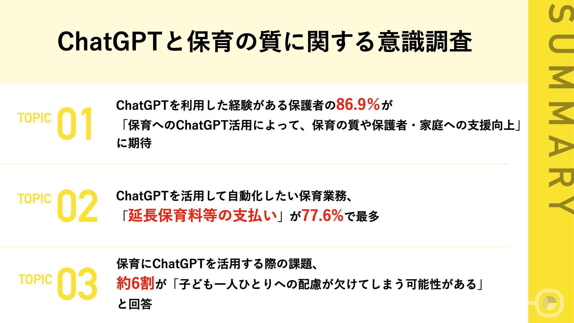 【ChatGPT×保育調査】保育へのChatGPT活用、保護者はどう感じる? 86.9%が「ChatGPTによる保育の質や保護者・家庭への支援向上」に期待