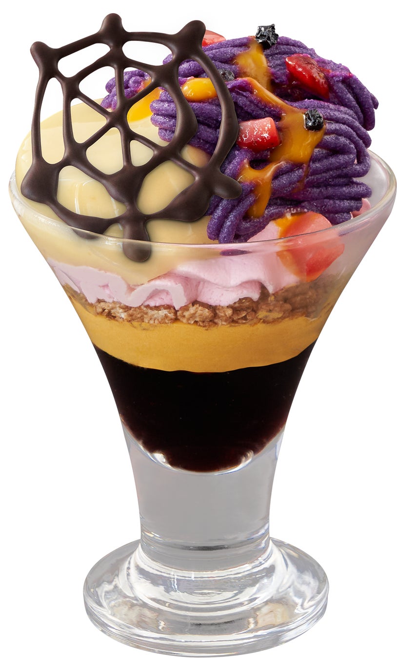 中でも「ウィキッドプリンサンデー」は、食べ進めるごとに紫芋やかぼちゃなど、秋ならではの味わいや、ぷるぷる食感のプラントベースプリンやザクザク食感の玄米フレークなど異なる食感の組み合わせ、甘み×酸味×ほろ苦さといった絶妙な味わいのバランス感など、様々な表情を楽しめるこだわりのサンデーです。10月1日(土)~31日(月)は期間限定でクモの巣のチョコレートのトッピングもあり、ハロウィン気分を盛り上げます。