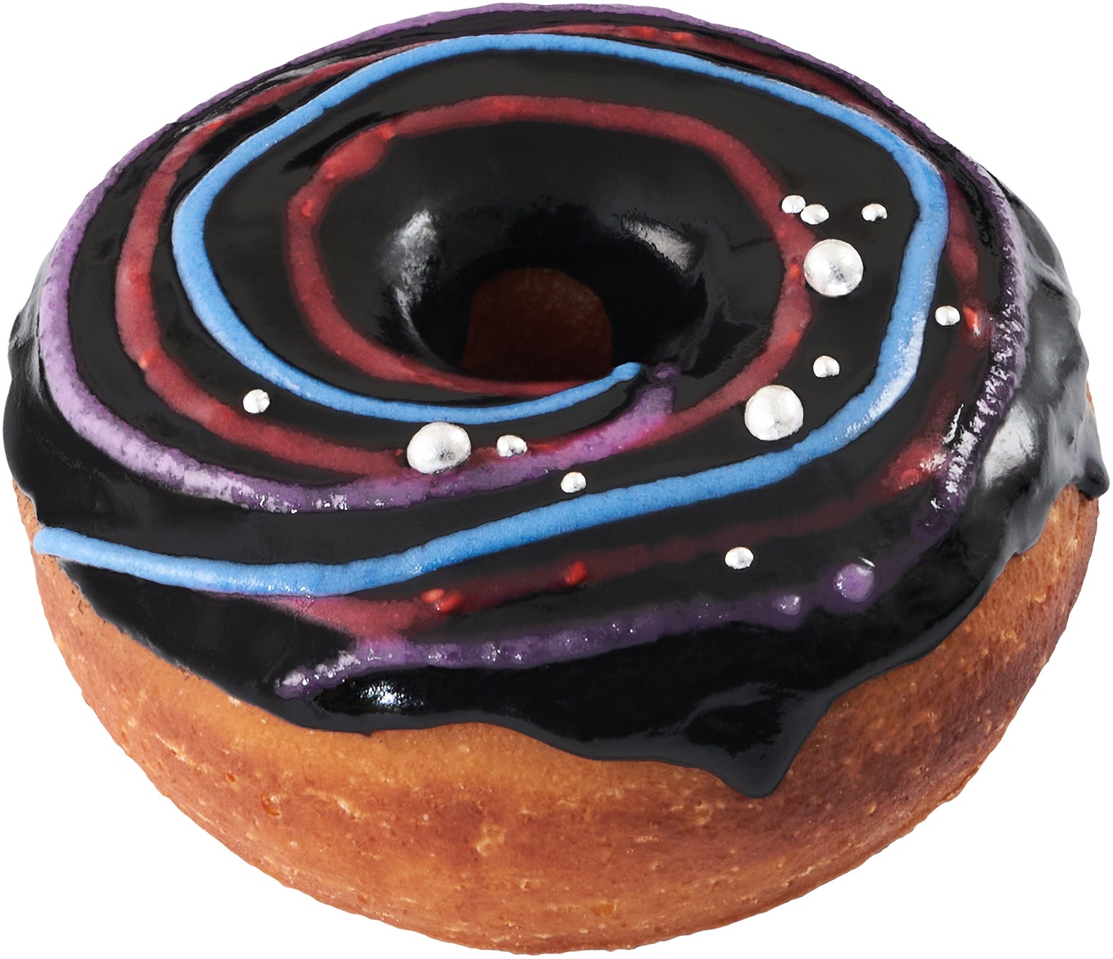 一口食べると、ブラックのグレーズからは想像できないぶどうの爽やかさが口いっぱいに広がり、まるで魔女の魔法にかけられたよう。パープル、ピンク、ブルーのグレーズのラインは、食べる場所によって味が変わるのも特徴です。心躍るロリポップキャンディーのような見た目で、ハロウィン気分を一層盛り上げてくれます。