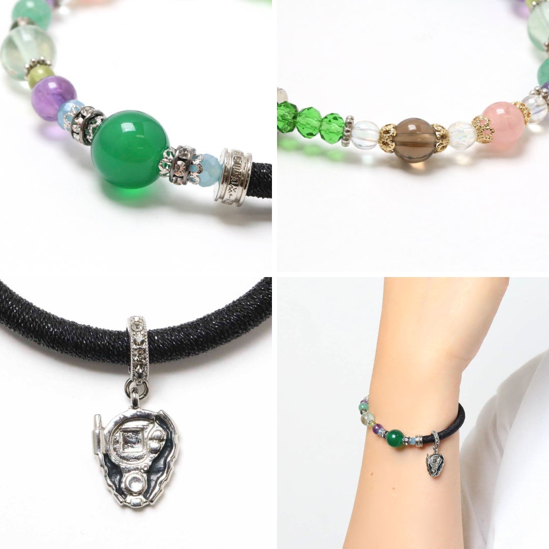 それぞれのキャラクターのイメージカラーやボディカラーの天然石をちりばめたブレスレットには、「D-3」をモチーフにしたメタルチャームが煌めきます。