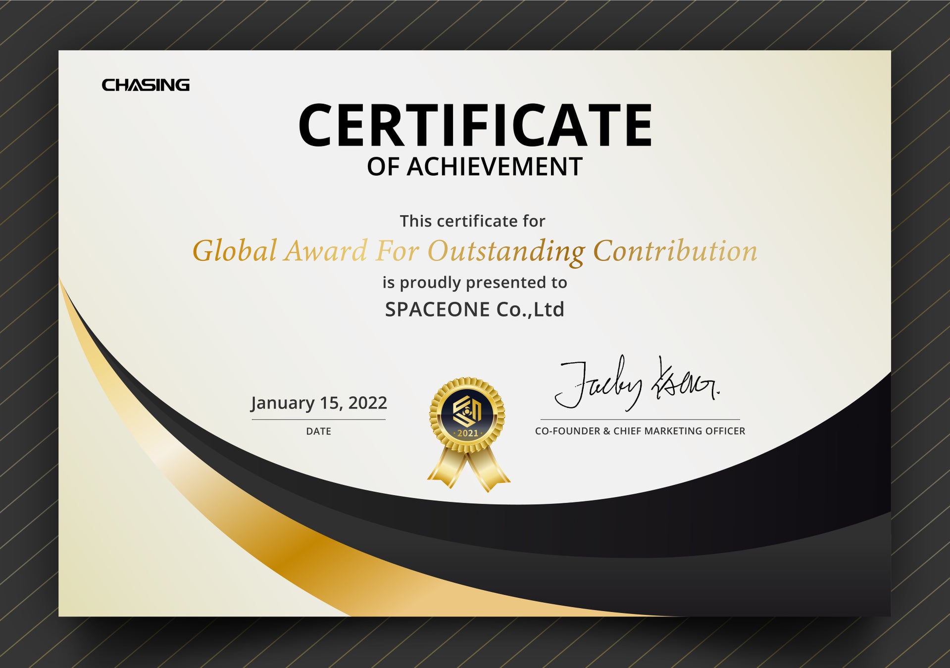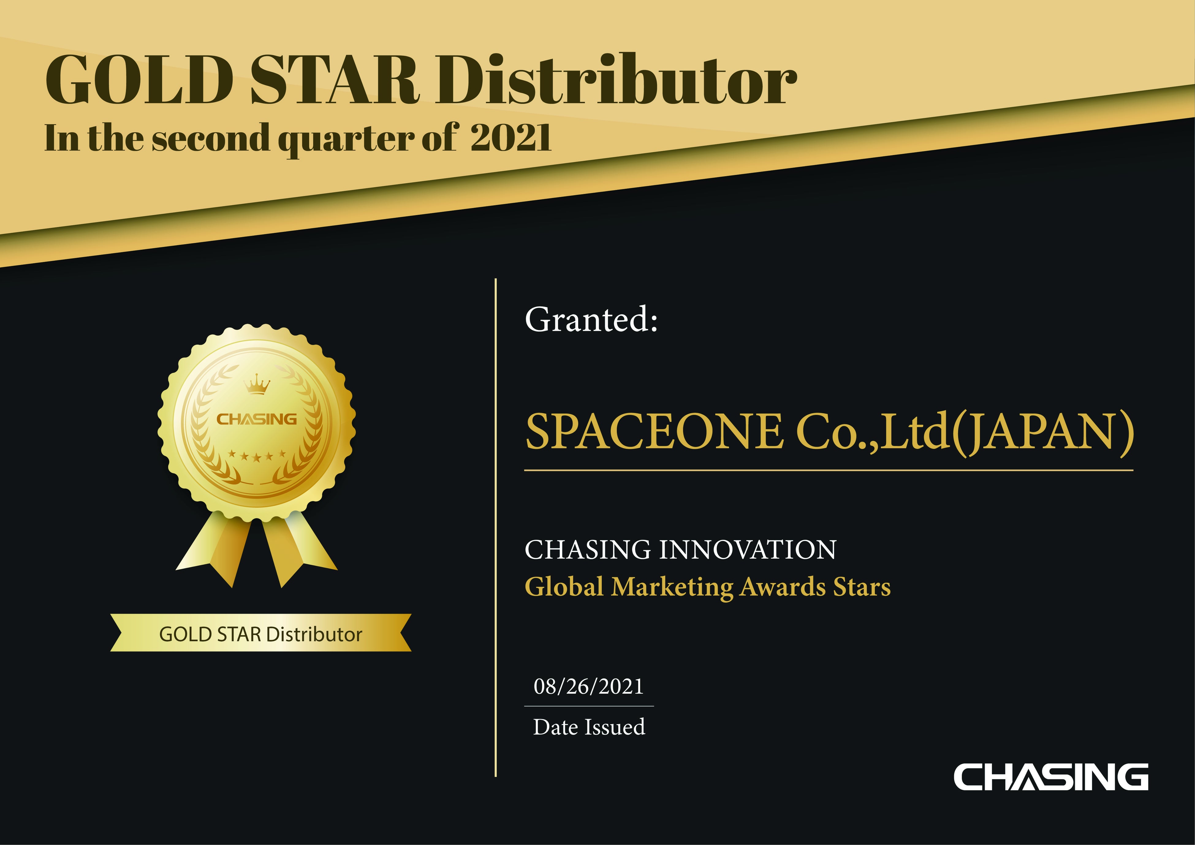 CHASING社(本社:中国深圳)の国内初販売パートナーである株式会社スペースワン(東京都台東区:代表取締役 小林 康宏)は、日本国内でのマーケティング・プロモーション活動が評価され、グローバル年間最高賞である「Outstanding Contribution award」の受賞しました。株式会社スペースワンはCHASING社と2018年に国内初のパ―トナー締結をしており、この受賞はCHASINGの世界中の約200社の販売パートナーでも3社のみです。