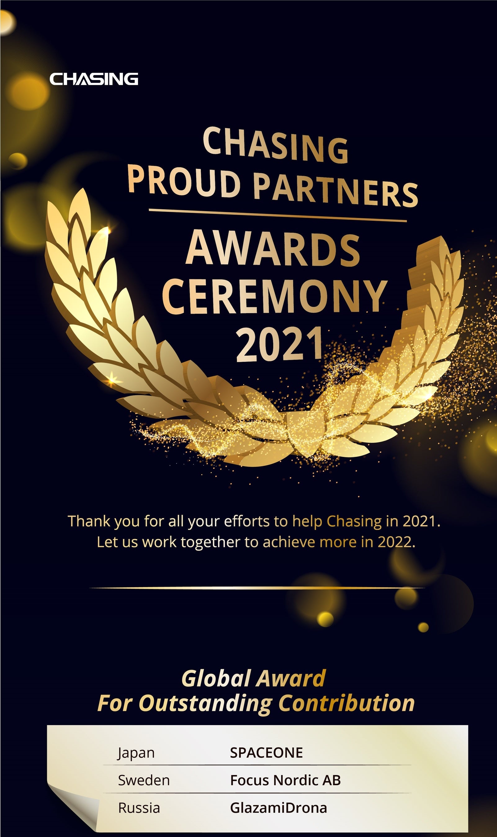 CHASING社と株式会社スペースワンは2018年4月に日本国内では初となる正規パートナーを締結し、製品のプロモーションや販売、CHASING製品を使用した業務も積極的に行っており、その活動が評価され、この度、グローバル年間最高賞「Outstanding Contribution award」受賞しました。