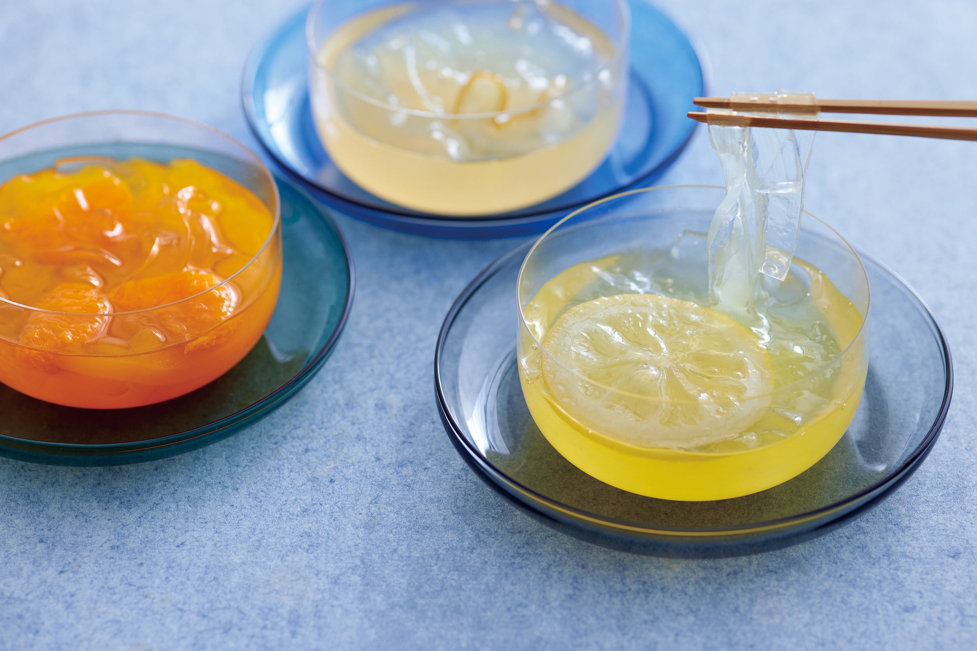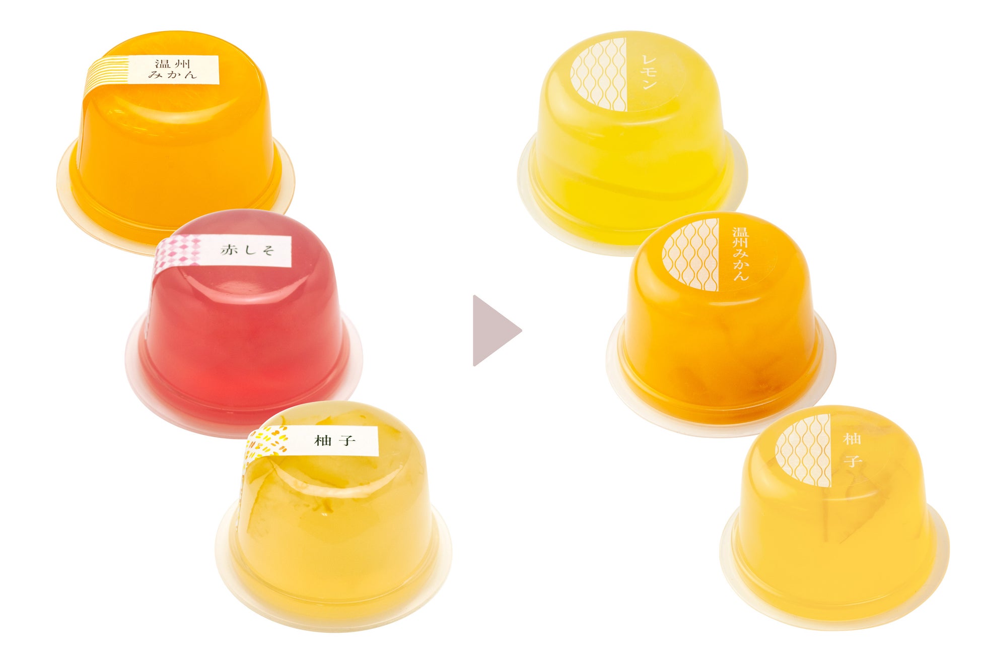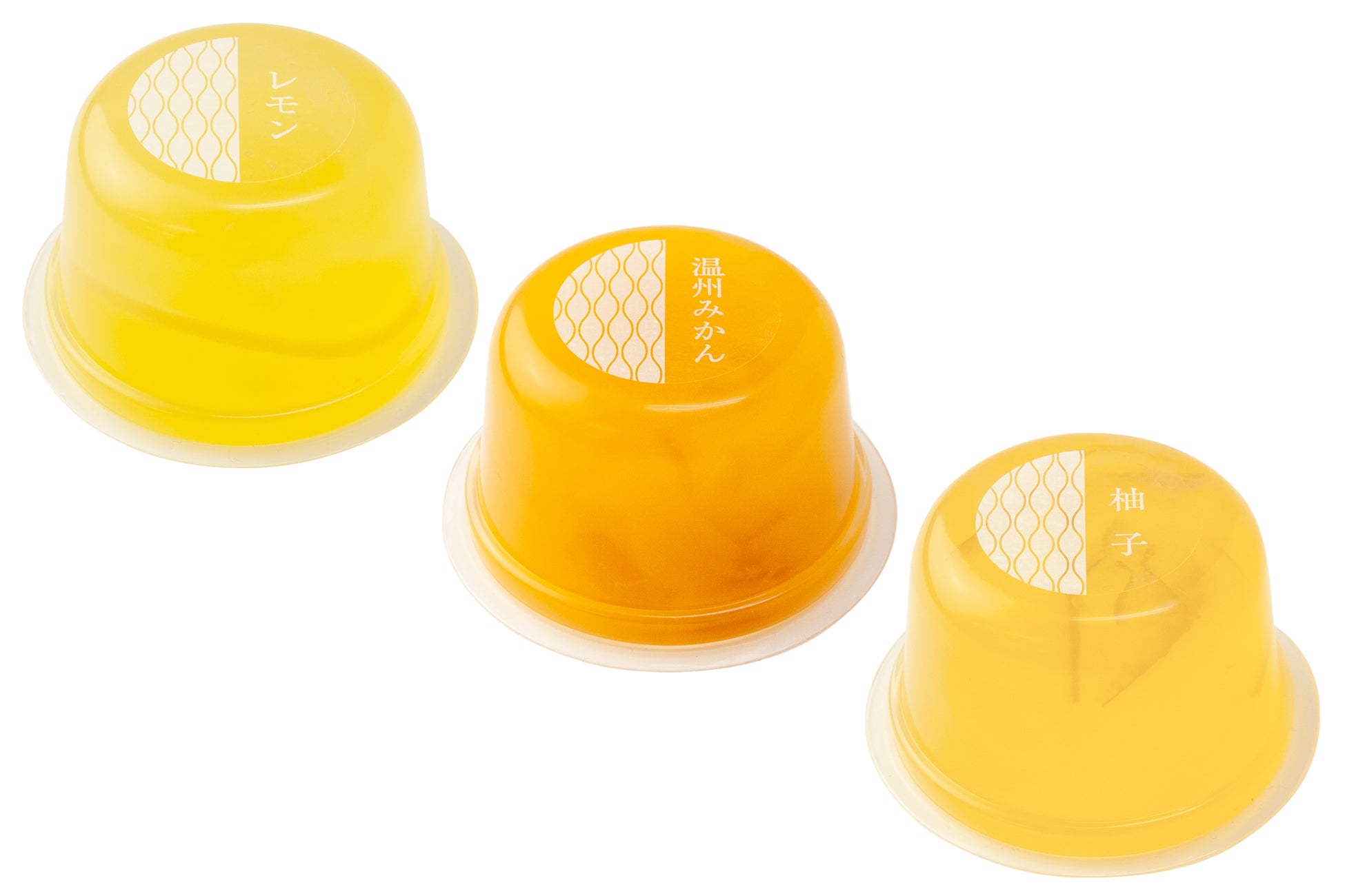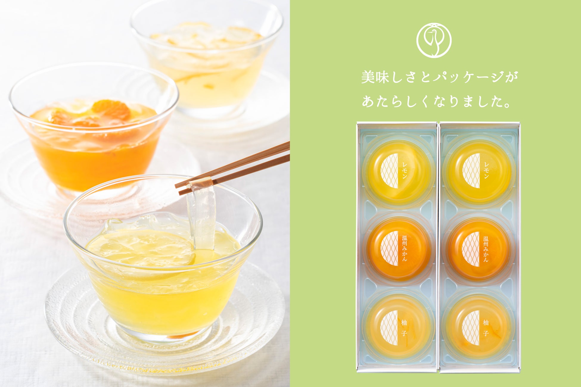 昨年までの「柚子」「温州みかん」「赤しそ」のラインナップから、より夏らしい爽やかさを演出する「レモン」「温州みかん」「柚子」の3種にリニューアルいたしました。冷蔵庫でお好みに冷やしていただきますと、さらに美味しくお召し上がりいただけます。
