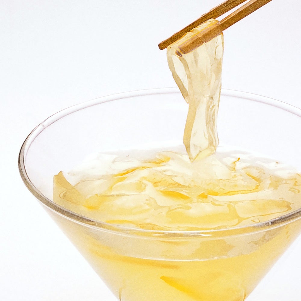 「TSURU涼涼(つるりょうりょう)」は、国産フルーツを使用した“ジュレ”に、夏の和の甘味には欠かせない“葛きり”をあわせた、お箸でお召し上がりいただく和風ゼリーです。爽やかな甘味のぷるぷるジュレと、伝統の「吉野本葛」を使用したつるっとなめらかなのどごしの葛きりを、お好みの器に盛り付けて。夏のご贈答をはじめ、皆さまにご愛顧いただいて参りました。