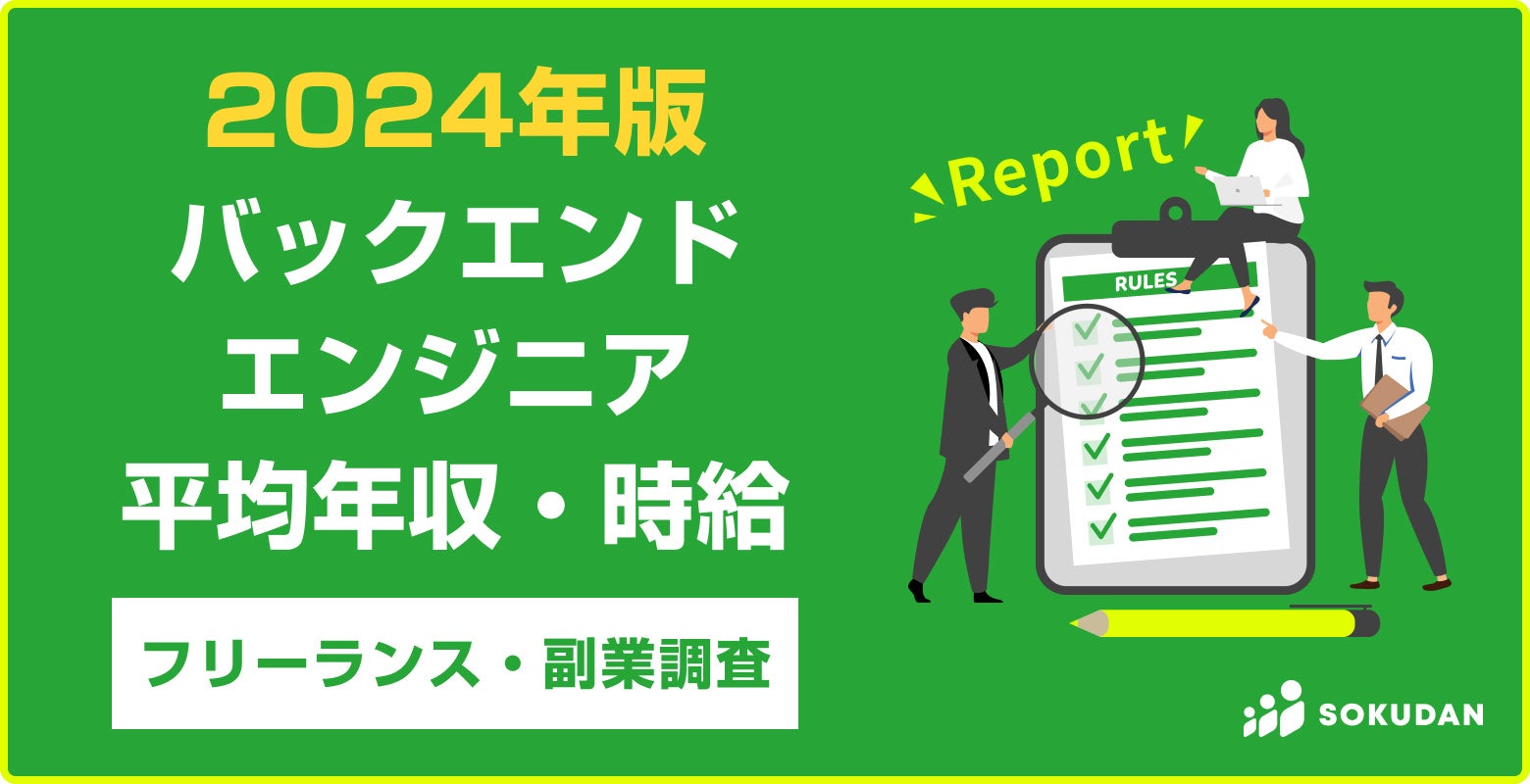 この記事では、SOKUDANに掲載されているフリーランス・副業案件のうち、バックエンドエンジニアに絞って、平均年収・時給など調査しレポート記事にしています。記事後半では、フリーランスバックエンドエンジニアの業界別の平均年収・時給や求められるスキルも記載しております。