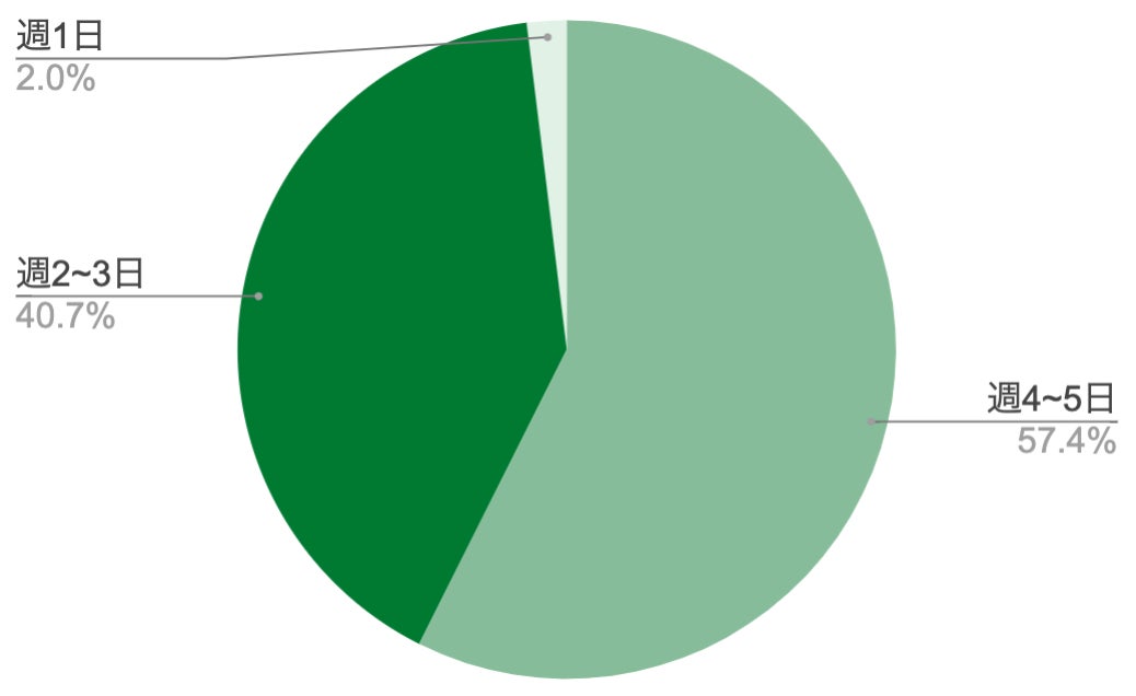 フリーランス・副業のバックエンドエンジニア案件の稼働日数は、週3日以下が42.7%、週4〜5日が57.4%となりました。