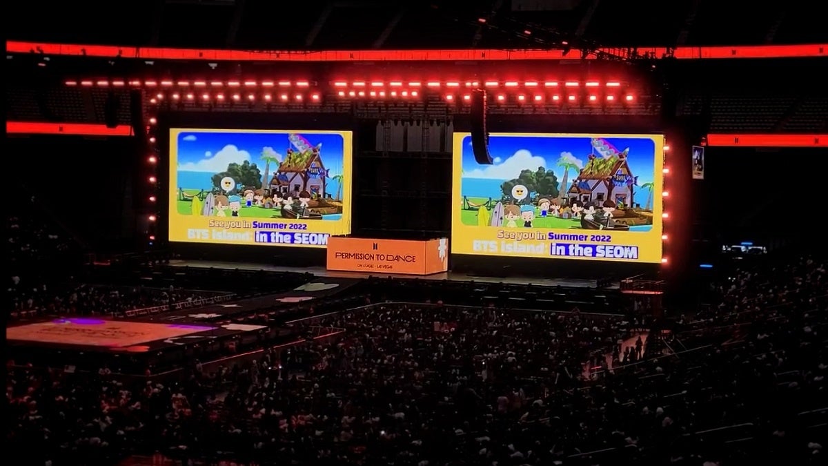 今月8日(現地時間)に始まった「BTS PERMISSION TO DANCE ON STAGE - LAS VEGAS」公演前、Allegiant Stadiumのスクリーンで初公開されたティーザー映像には、楽しくゲームをプレイするBTSの姿と各メンバーの特徴を盛り込んだキュートなBTSキャラクター、そして海の真ん中の島を背景に様々な遊びを楽しむキャラクターの可愛らしいプレイ映像が公開され、関心を集めています。