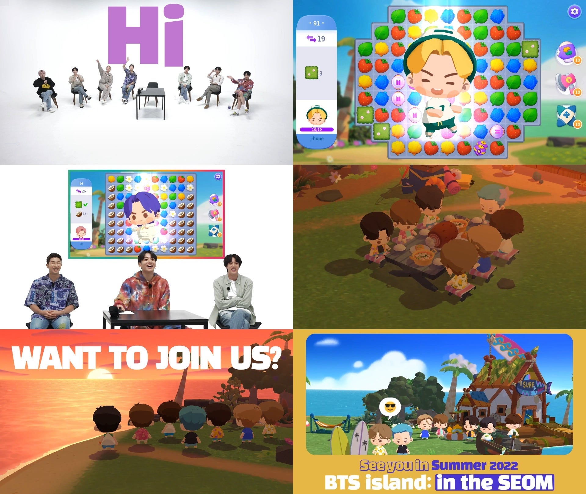 今回のティーザー映像で初公開された新作ゲーム「BTS Island: In the SEOM」は、誰でも気軽に楽しめるマッチ3パズルジャンルで、美しく神秘的な島で冒険と休みを楽しむBTSのストーリーを見ることができる「ヒーリングパズルゲーム」だ。BTSメンバーたちは単にゲームの中のキャラクターとして登場するのではなく、デザインなどゲーム企画段階からアイデアを出しながら制作に参加してきました。BTSがアイディアと制作に参加した過程は後日映像で公開される予定です。