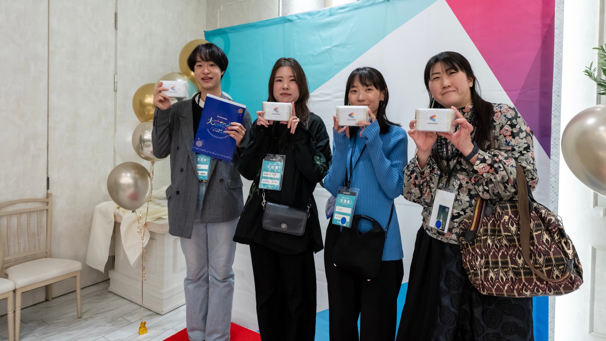 また、「橋渡し」が食卓や日常にも続くようにと願いを込め、当社ロゴ入りのオリジナル箸とカップ麺をノベルティとしてお渡し。この繋がりが2026年も続いていくように願いを込め、1年の集大成となる大忘年会を締めくくりました。